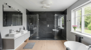 - En stor luksusrenovering (10+ m²): High-end materialer som natursten eller microcement, specialdesignede løsninger, dobbeltbruser, fritstående badekar etc. Prisestimat: 250.000 kr. og opefter.