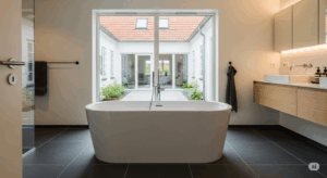 Den Symmetriske Opstilling: Placer et højskab på hver side af vaskemøblet for at skabe en smuk symmetri og en følelse af balance i rummet. Dette look fungerer især godt i større badeværelser.
